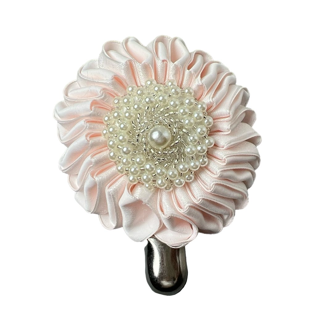 Kytička ze skládané stuhy světle růžová s perličkovým středem
